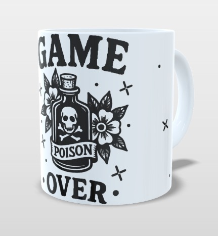 A Caneca Game Over da Rocky Store é pra quem encara a rotina com humor sombrio, ironia afiada e zero paciência pra drama leve. Inspirada no universo old school da tattoo, a arte traz um frasco de veneno com caveira e flores contrastando perigo e delicadeza — como se dissesse que o jogo pode até acabar, mas você segue na partida com mais uma dose de cafeína.